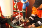 Verkosto puhdistettiin ensin, jonka jälkeen lämmönsiirrin puhdistettiin erikseen. Lämmönsiirtimeenkin oli kertynyt paljon epäpuhtauksia käyttöikänsäkin takia. Lämmityspuolen lämmönsiirrin toimii puhdistuksen jälkeen varmasti energiatehokkaammin.